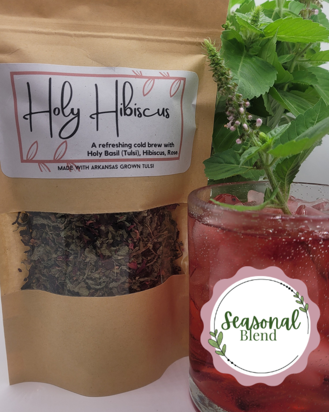 The name says it all—Holy Hibiscus is a beautifully balanced blend of homegrown tulsi (holy basil), hibiscus, and rose. Floral, refreshing, and packed with antioxidants, this blend is perfect for easing stress, supporting immune health, or just sipping something that tastes as good as it makes you feel.
