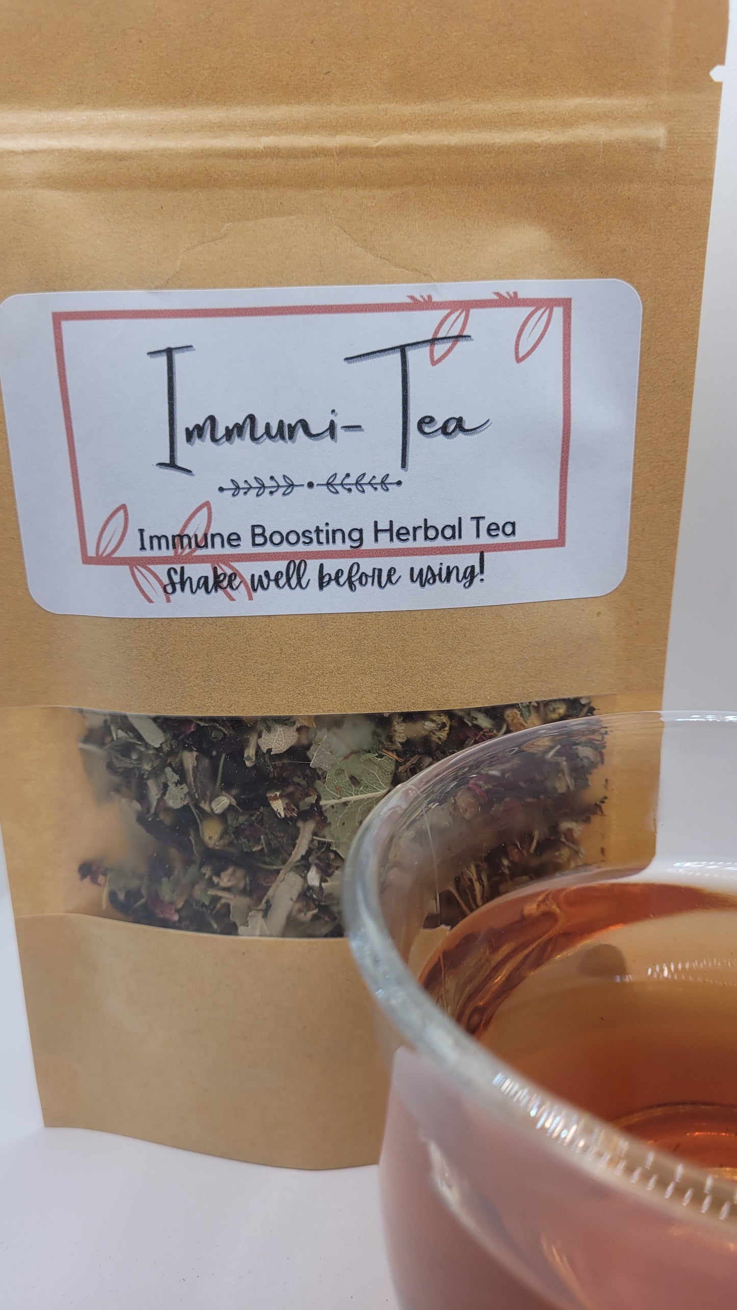 Immuni-Tea is a powerful herbal blend designed to support immune health and nourish the body with essential vitamins and minerals. With elderberries and echinacea to help strengthen the immune system, hibiscus, rose hips, and orange peel for a vitamin C boost, and licorice root to soothe the throat, this tea is a wonderful addition to your wellness routine—whether for daily support or when you need extra nourishment.